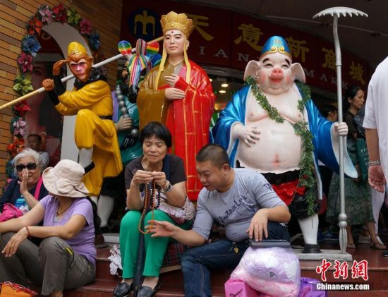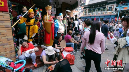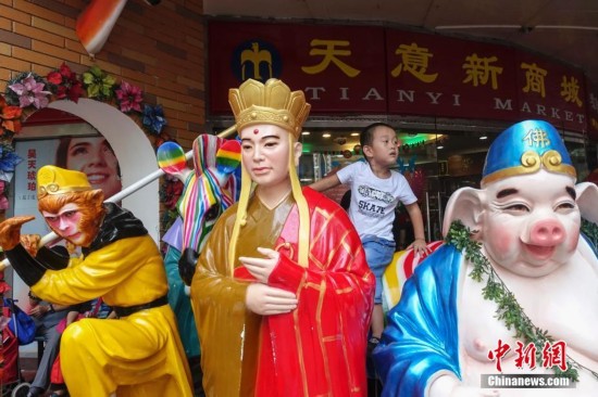 9月15日,一孩童坐在天意門前西游記師徒雕像上遠(yuǎn)眺。當(dāng)日,自1992年開業(yè)至今的北京天意市場(chǎng)迎來(lái)其在北京西城阜外大街營(yíng)業(yè)的最后一日,商家趁機(jī)“瘋狂甩貨”,大批北京民眾也紛至沓來(lái)。這里曾是北京著名的小商品商城,聚集了數(shù)千家商戶。為疏解北京非首都功能,天意商城將于本月16日關(guān)門停業(yè)。中新社記者 崔楠 攝