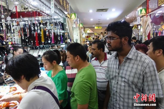 9月15日,幾位來(lái)自斯里蘭卡的游客慕名前來(lái)天意選購(gòu)商品。當(dāng)日,自1992年開業(yè)至今的北京天意市場(chǎng)迎來(lái)其在北京西城阜外大街營(yíng)業(yè)的最后一日,商家趁機(jī)“瘋狂甩貨”,大批北京民眾也紛至沓來(lái)。這里曾是北京著名的小商品商城,聚集了數(shù)千家商戶。為疏解北京非首都功能,天意商城將于本月16日關(guān)門停業(yè)。中新社記者 崔楠 攝