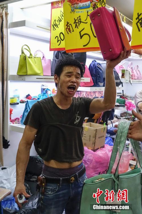 9月15日,一商家舉起商品大聲叫賣。當(dāng)日,自1992年開業(yè)至今的北京天意市場(chǎng)迎來(lái)其在北京西城阜外大街營(yíng)業(yè)的最后一日,商家趁機(jī)“瘋狂甩貨”,大批北京民眾也紛至沓來(lái)。這里曾是北京著名的小商品商城,聚集了數(shù)千家商戶。為疏解北京非首都功能,天意商城將于本月16日關(guān)門停業(yè)。中新社記者 崔楠 攝