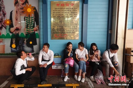 9月15日,幾位年輕人聚集在天意市場(chǎng)簡(jiǎn)介銘牌下休息。當(dāng)日,自1992年開業(yè)至今的北京天意市場(chǎng)迎來(lái)其在北京西城阜外大街營(yíng)業(yè)的最后一日,商家趁機(jī)“瘋狂甩貨”,大批北京民眾也紛至沓來(lái)。這里曾是北京著名的小商品商城,聚集了數(shù)千家商戶。為疏解北京非首都功能,天意商城將于本月16日關(guān)門停業(yè)。中新社記者 崔楠 攝