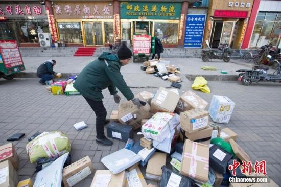 工作人員在分揀包裹(資料圖)。張?jiān)?攝