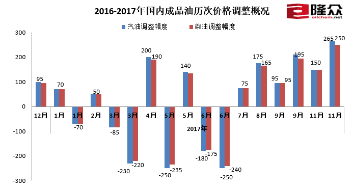 “11月17日0點(diǎn)將上調(diào)汽柴油限價(jià),每噸汽油上調(diào)265、柴油上調(diào)250元,折合每升89#0.19、92#0.21、95#0.22、0#0.21元。”隆眾資訊成品油分析師趙桂珍表示,本次調(diào)價(jià)是年內(nèi)第十次上調(diào),也創(chuàng)下今年年內(nèi)最大漲幅。本次調(diào)價(jià)過(guò)后,2017年成品油調(diào)價(jià)將呈現(xiàn)“十漲六跌六擱淺”的格局。下一次調(diào)價(jià)窗口將在2017年11月30日24時(shí)開啟。