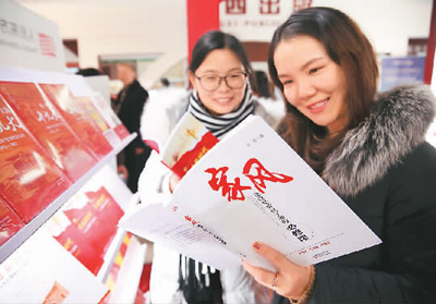 1月11日開(kāi)幕的2018北京圖書(shū)訂貨會(huì)上發(fā)布了《2017年中國(guó)圖書(shū)零售市場(chǎng)報(bào)告》。報(bào)告稱,網(wǎng)上書(shū)店渠道依然是市場(chǎng)增長(zhǎng)的主要推動(dòng)力,實(shí)現(xiàn)了25.82%的增長(zhǎng)。圖為讀者在圖書(shū)訂貨會(huì)上翻看圖書(shū)。