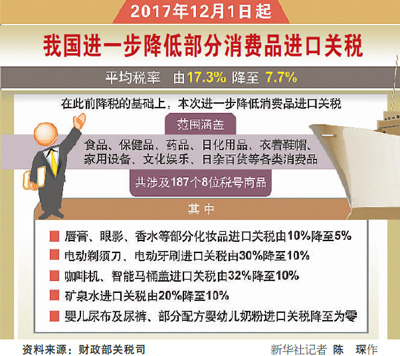 以2017年12月1日施行的稅收調(diào)整來說,財(cái)政部相關(guān)負(fù)責(zé)人指出,降低關(guān)稅為擴(kuò)大消費(fèi)品進(jìn)口、降低消費(fèi)品進(jìn)口成本創(chuàng)造了有利的條件。降低消費(fèi)品關(guān)稅釋放出擴(kuò)大消費(fèi)品進(jìn)口的積極信號(hào)。