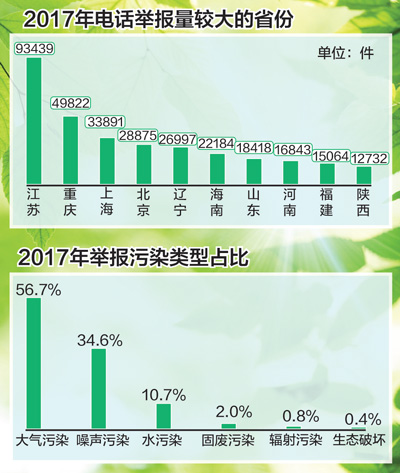 本報(bào)北京1月23日電 (記者孫秀艷)環(huán)境保護(hù)部1月23日發(fā)布通報(bào):2017年,全國環(huán)保舉報(bào)管理平臺(tái)共接到環(huán)保舉報(bào)61.89萬件,其中“12369”環(huán)保舉報(bào)熱線電話41萬件,約占66.2%,微信舉報(bào)近13萬件,約占20.9%,網(wǎng)上舉報(bào)79885件,約占12.9%。目前已辦結(jié)近59萬件,其余2.9萬件正在辦理中,環(huán)保舉報(bào)辦結(jié)率達(dá)95%。