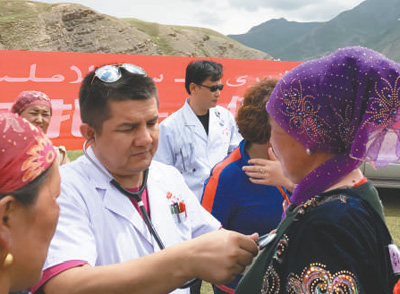 由克州人民醫(yī)院江蘇援疆醫(yī)療專家組成的義診團(tuán)隊(duì)來(lái)到烏恰縣吾合沙魯鄉(xiāng)和玉其塔什草原,為當(dāng)?shù)剞r(nóng)牧民送醫(yī)送藥。 |