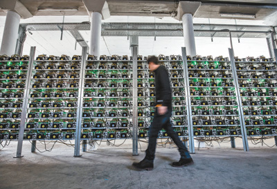 | 1月19日,奧地利伊布斯河畔魏德霍芬附近,一名“礦工”從加密幣“采礦”機組前經(jīng)過。 |