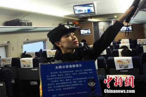 資料圖:G602次列車乘警認(rèn)真開展分檔查危工作。張毅 攝