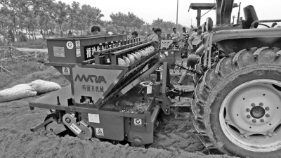 “這一播種機(jī),是由山東農(nóng)業(yè)大學(xué)和瑪麗亞機(jī)械農(nóng)機(jī)等企業(yè)歷時(shí)5年聯(lián)合研制的。通過田間播種效果看,基本上正芽率都在90%以上,非常符合我們山東對大蒜種植農(nóng)藝的要求!表n永平說,“使用智能大蒜精量播種機(jī)每天可播種大蒜50多畝,相當(dāng)于200多個(gè)人的工作量,打破了傳統(tǒng)大蒜播種不能直立、種植效率低的局面,為大蒜機(jī)械化、規(guī);、標(biāo)準(zhǔn)化種植奠定了堅(jiān)實(shí)的基礎(chǔ)!