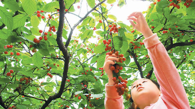| 圖為喜摘櫻桃 |