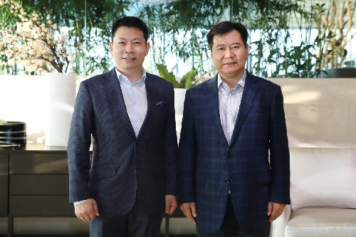 蘇寧控股集團(tuán)董事長張近東在蘇寧總部會晤華為消費者業(yè)務(wù)CEO余承東