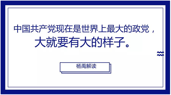 習(xí)近平總書記在去年十九大之后新常委見面會上說:中國共產(chǎn)黨現(xiàn)在是世界上最大的政黨,大就要有大的樣子。