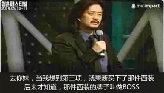 還記得紅遍微博勵(lì)志故事的那個(gè)boss哥嗎?那個(gè)從120萬西裝開始的億萬富翁。boss哥年輕時(shí)背包巴黎游,在街頭看上一家西裝店的西裝,上身一試,就像為他量身定做,簡直不要太帥。一看價(jià)錢120萬韓元,心想這輩子買的衣服加起來都沒這貴。但回頭一看鏡子里帥的掉渣小伙,合計(jì)了一番整個(gè)旅行的費(fèi)用,買,買了!后來知道那個(gè)貴死人的西裝叫BOSS。