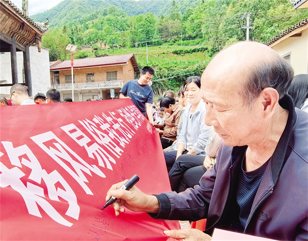 近日,漢濱區(qū)葉坪鎮(zhèn)在慶祝中國共產黨成立104周年活動現(xiàn)場,開展“移風易俗我先行 拒絕升學宴請風”簽名和宣講活動。 胡子新 攝