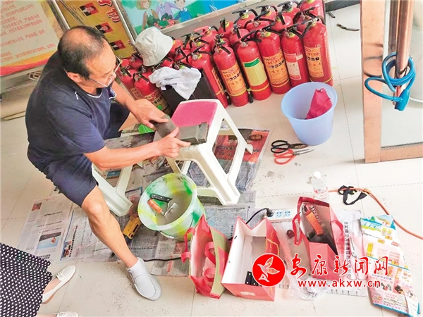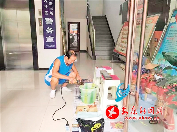 半年后,“老劉工作室”在社區(qū)內(nèi)已小有名氣。此時(shí),御公館小區(qū)的新住戶馮福建認(rèn)出了這位老熟人。“1991年,我還在老家富家河種田,劉成厚復(fù)員后被分到當(dāng)時(shí)的八一水庫管理處養(yǎng)魚,他管理的魚塘和我家稻田一渠之隔。