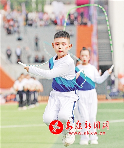 石泉縣曾溪鎮(zhèn)中心小學的花式跳繩展示。