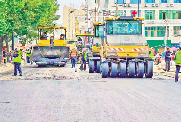 中心大街路面鋪設(shè)施工現(xiàn)場(chǎng)。