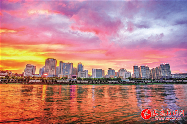 晚霞映襯下的江北