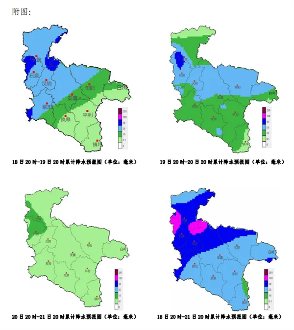 18后半夜至19日白天:小雨轉(zhuǎn)中雨,中北部、西部(寧陜、石泉、漢陰、紫陽、漢濱中北部、旬陽北部)大雨,局地暴雨。
