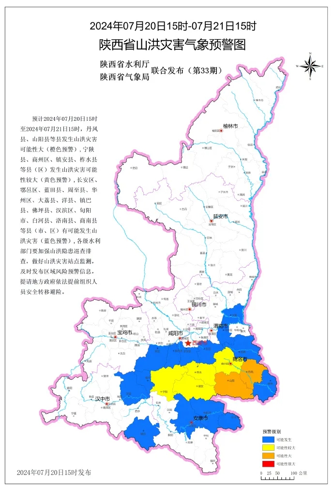陜西省水利廳與省氣象局聯(lián)合發(fā)布山洪災(zāi)害預(yù)警,預(yù)計7月20日15時至7月21日15時,下圖中所示縣(區(qū))可能發(fā)生山洪災(zāi)害預(yù)警:其中我市寧陜縣發(fā)生山洪災(zāi)害可能性較大(黃色預(yù)警),漢濱區(qū)、旬陽市、白河縣有可能發(fā)生山洪災(zāi)害(藍(lán)色預(yù)警),各級水利部門要加強(qiáng)山洪隱患巡查排查,做好山洪災(zāi)害站點監(jiān)測,及時發(fā)布區(qū)域風(fēng)險預(yù)警信息,地方政府應(yīng)依法提前組織人員安全轉(zhuǎn)移避險。