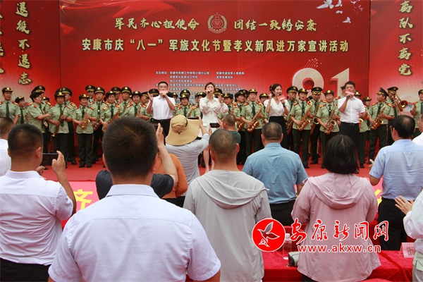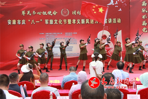 本網(wǎng)訊(記者 黃慧慧 通訊員 王典根)軍愛民,民擁軍,軍民融合情誼深。7月27日,由安康市雙擁工作領(lǐng)導小組辦公室、安康市退役軍人事務局、安康軍分區(qū)政治工作處、武警安康支隊、恒口示范區(qū)管委會共同主辦,以“軍民齊心擔使命 團結(jié)一致鑄安康”為主題的安康市慶“八一”軍旅文化節(jié)暨孝義新風進萬家宣講活動在恒口示范區(qū)南月村舉行,軍地領(lǐng)導、部隊官兵、退役軍人、現(xiàn)役軍人家屬及群眾代表共300余人參加活動。