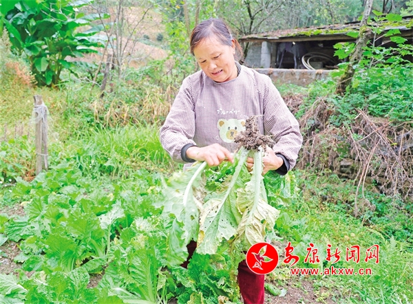 龔光憲在地里擇菜,準(zhǔn)備給公公做飯