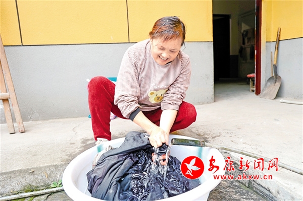 掃完院壩,龔光憲徑自走進(jìn)廚房,不一會(huì)兒,就端出了老人喜歡吃的臊子面。吃罷飯后,龔光憲麻利地把公公換下來的衣服放入一個(gè)大盆中,拉來水管蹲在地上搓洗起來。