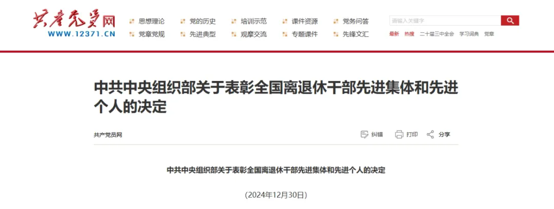 12月30日,中共中央組織部對150個(gè)全國離退休干部先進(jìn)集體和450名先進(jìn)個(gè)人進(jìn)行表彰,我市退休干部陳守業(yè)榮獲“全國離退休干部先進(jìn)個(gè)人”。