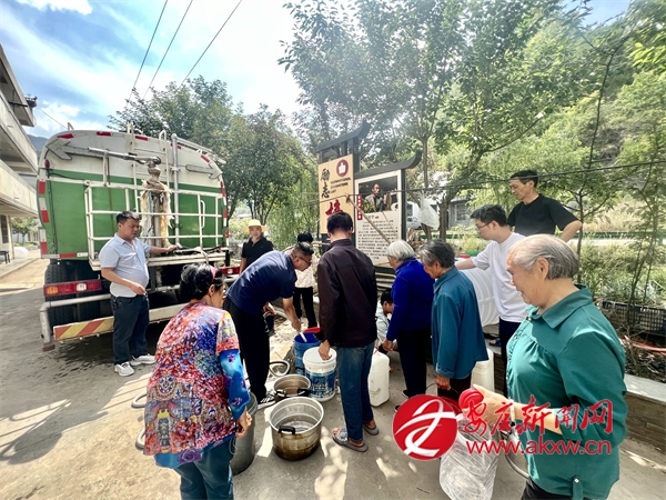 受高溫干旱天氣影響,漢陰縣城關鎮(zhèn)部分群眾生產生活用水受到影響。5月22日,該鎮(zhèn)協調灑水車、消防車,組織黨員干部為群眾送水。張輝 攝