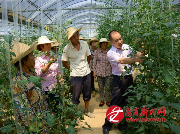 忠誠(chéng)村黨支部書(shū)記劉瑞紅現(xiàn)場(chǎng)給村民講解如何修剪圣女果