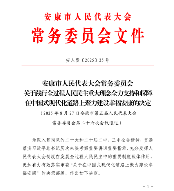 本網(wǎng)訊(通訊員 周清華 張凡)8月27日,安康市五屆人大常委會第二十六次會議作出《安康市人民代表大會常務委員會關于踐行全過程人民民主重大理念全力支持和保障在中國式現(xiàn)代化道路上聚力建設幸福安康的決定》(以下簡稱《決定》),并自印發(fā)之日起實施。以地方人大常委會作出重大事項決定的形式,將黨的主張通過法定程序轉化為全體人民的共同意愿,是安康市人大常委會強化擔當、依法履職的創(chuàng)新實踐,是圍繞中心、服務大局的務實舉措,必將為在中國式現(xiàn)代化道路上聚力建設幸福安康注入堅實的人大力量。