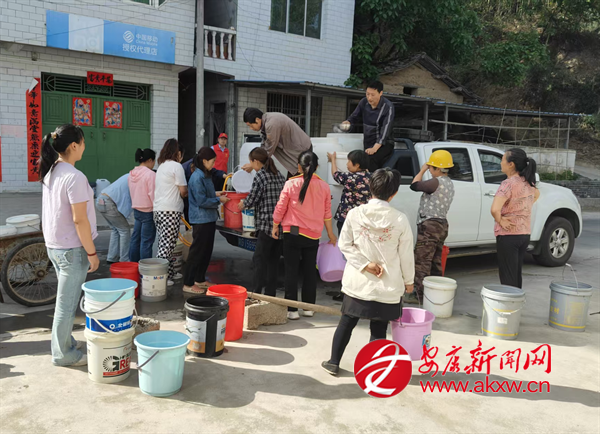5月19日,平利縣長安鎮(zhèn)積極應對旱情,組織常安鄉(xiāng)建公司開展送水入戶行動,確保村民飲水安全。圖為鎮(zhèn)村干部頂著烈日挨家配送。胡鈴鈴 攝受高溫干旱天氣影響,漢陰……