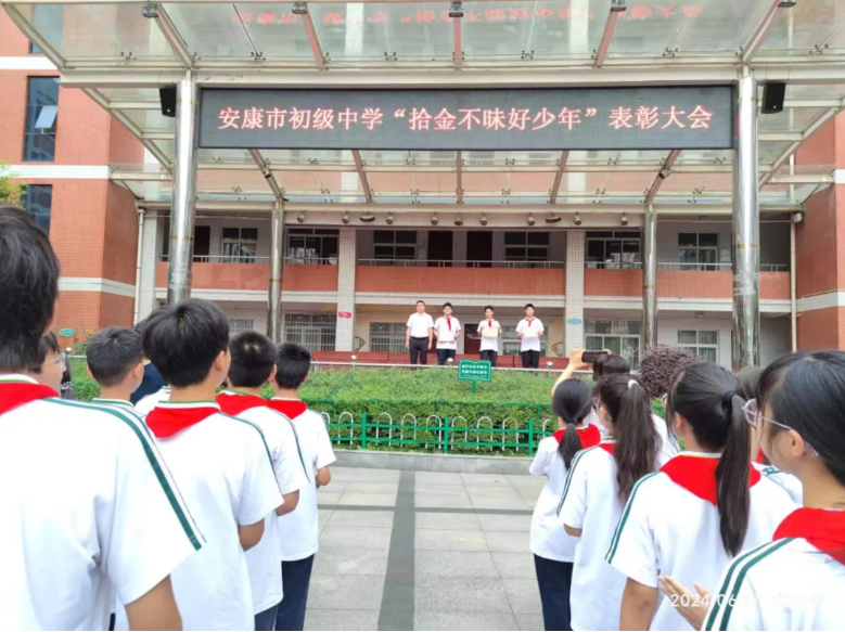 6月17日上午,安康市初級中學(xué)舉行了一場表彰大會。表彰我校初一四班景永強(qiáng)、汪正男、馬崇偉三位同學(xué)拾金不昧的行為,并為其頒發(fā)獎(jiǎng)狀,引導(dǎo)全校師生學(xué)習(xí)這種拾金不昧的優(yōu)良品質(zhì),將傳統(tǒng)美德內(nèi)化于心,外化于行。