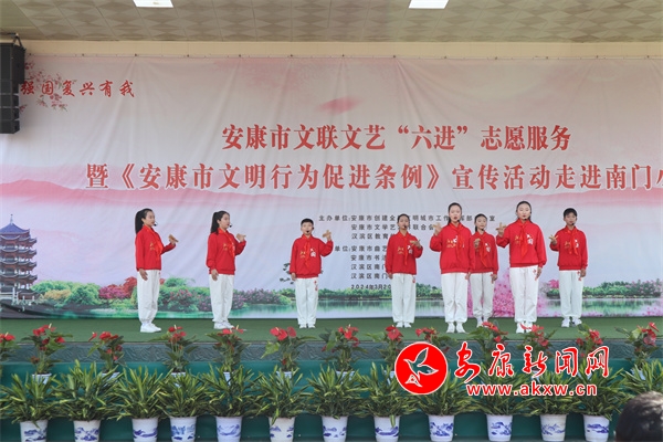 本網(wǎng)訊(見習(xí)記者 張璇)3月20日,由市創(chuàng)文辦、市文聯(lián)主辦的“強(qiáng)國復(fù)興有我”安康市文聯(lián)文藝“六進(jìn)”志愿服務(wù)暨《安康市文明行為促進(jìn)條例》宣傳活動在漢濱區(qū)南門小學(xué)舉行。
