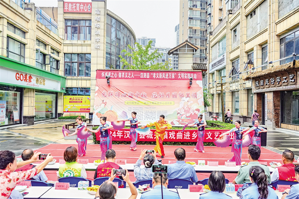 9月12日,漢濱區(qū)江北街道后張嶺社區(qū)在山水嶺居小區(qū)舉辦“中秋佳節(jié)情意濃,文明風(fēng)尚萬(wàn)家揚(yáng)”活動(dòng)。活動(dòng)由居民自己創(chuàng)意進(jìn)行文采、繪畫(huà)展示。(胡建波 攝)