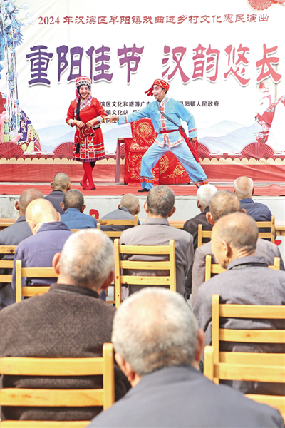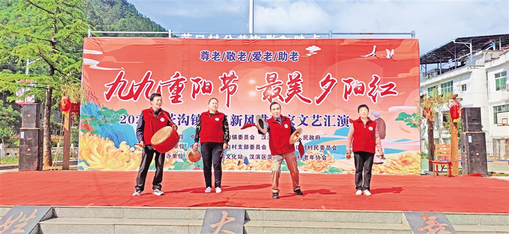 10月9日,漢濱區(qū)文旅廣電局聯(lián)合茨溝鎮(zhèn)茨口村舉辦了“九九重陽節(jié) 最美夕陽紅”孝義新風進萬家文藝活動;顒右“尊老、敬老、愛老、助老”為主題,茨溝鎮(zhèn)茨口村老年協(xié)會分會還為本村98名老年人統(tǒng)一購買了紅馬甲和過冬的皮鞋,讓老人們度過一個幸?鞓返闹仃柟(jié)。 余遲 攝