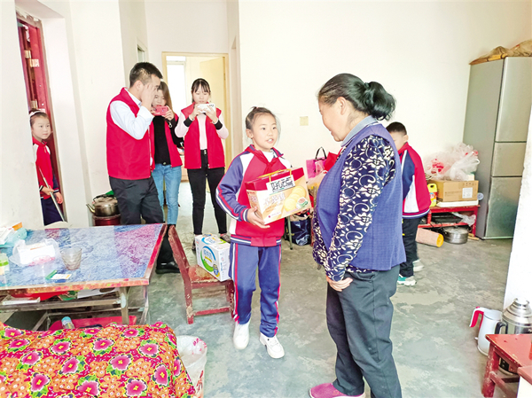 10月10日,石泉云霧山鎮(zhèn)中心小學組織部分學生為社區(qū)老人整理房間、打掃衛(wèi)生,還為老人送上節(jié)日的禮物。 譚相華 攝