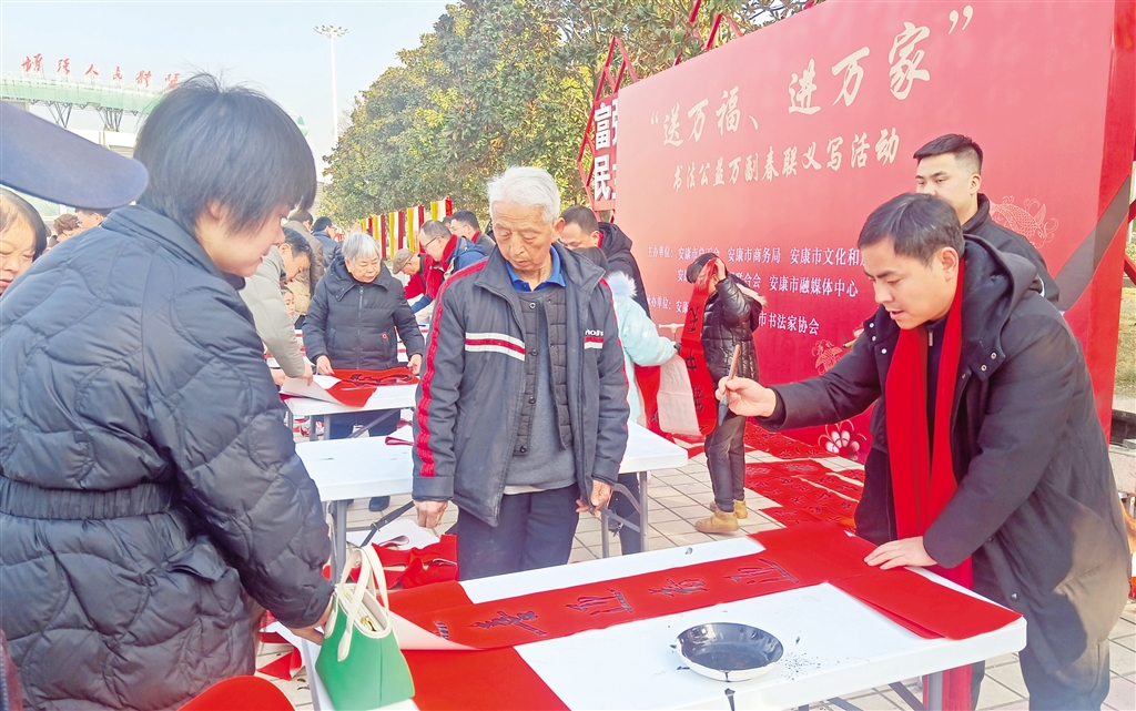 1月18日,“送萬福、進萬家”書法公益萬副春聯(lián)義寫首場活動在安康城區(qū)金州廣場舉行,市書法家協(xié)會30余名書法家參加義寫活動;顒蝇F(xiàn)場,人頭攢動,長桌一字擺開,……