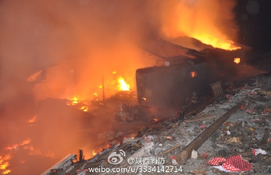 旬陽漢江煙花廠今晨4點(diǎn)發(fā)生爆炸起火。(圖片來源:陜西省公安消防總隊(duì))截止早上9點(diǎn)25分,大火被撲滅西部網(wǎng)訊 記者今天(1月21日)從陜西省公安消防總隊(duì)了解到,……