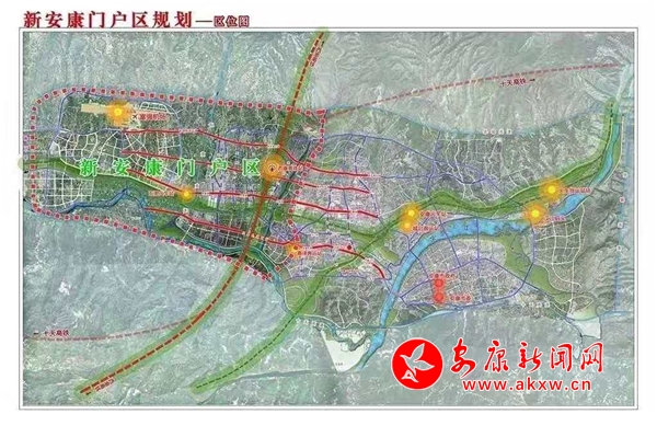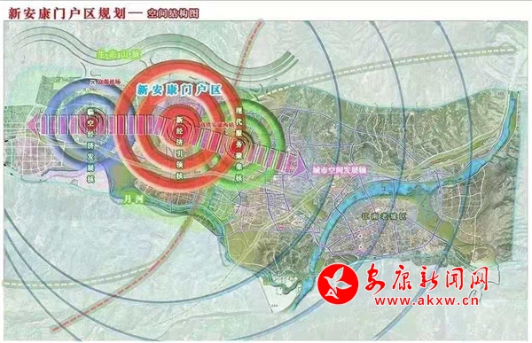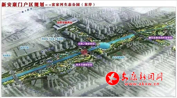 依據(jù)總體規(guī)劃,擬將安康高新區(qū)高新大道以西、北環(huán)快速干道以南、月河流域以北、寨河梁以東區(qū)域的60平方公里,規(guī)劃為新安康門(mén)戶區(qū)。在空間布局上,以高鐵安康西站為核心,以新時(shí)代大道、新安康大道、安康大道、創(chuàng)新路4條東西向城市主干道和高新大道、高新七路、高新十路、高新十二路、冉河西路、國(guó)賓大道6條南北向城市主干道為軸線,規(guī)劃布局新經(jīng)濟(jì)引領(lǐng)區(qū)、臨空經(jīng)濟(jì)區(qū)、新行政中心區(qū)、現(xiàn)代服務(wù)聚集區(qū)、安康特色產(chǎn)業(yè)區(qū),以此打造“五大”門(mén)戶。
