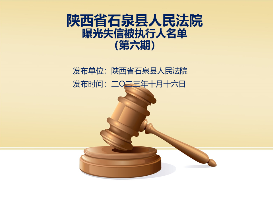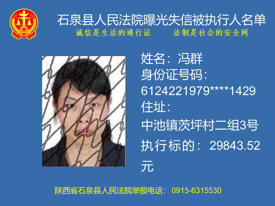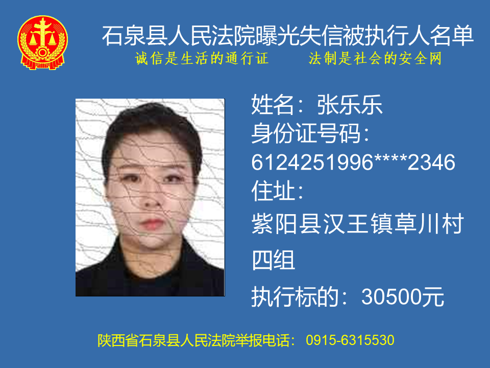 為了進(jìn)一步加大執(zhí)行力度,保障勝訴當(dāng)事人的合法權(quán)益,推進(jìn)社會誠信體系建設(shè),依照《中華人民共和國民事訴訟法》、《最高人民法院關(guān)于公布失信被執(zhí)行人名單信息的若干規(guī)定》等法律、司法解釋的有關(guān)規(guī)定,現(xiàn)對一批已進(jìn)入執(zhí)行程序,且尚未全部履行義務(wù)的被執(zhí)行人進(jìn)行媒體曝光,歡迎廣大群眾支持石泉縣人民法院的工作,向我院提供被執(zhí)行人的財產(chǎn)線索,使生效法律文書能夠得到切實執(zhí)行,讓人民群眾切實感受到公平正義就在身邊。