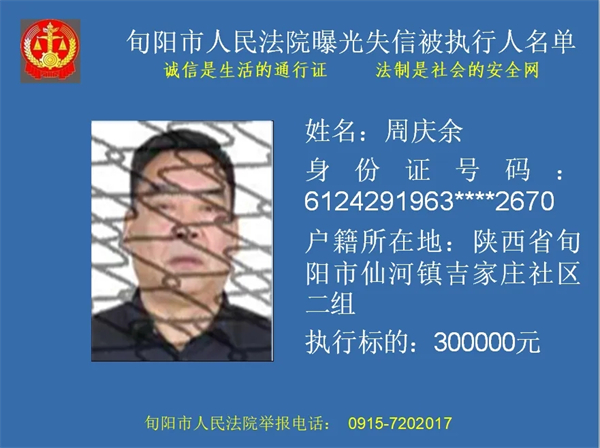 曝光失信 | 旬陽法院發(fā)布2024年第一期失信被執(zhí)行人名單