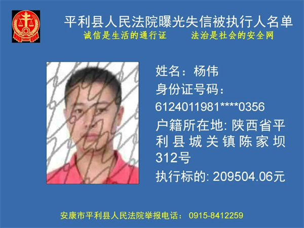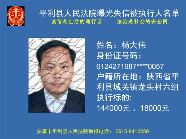 曝光失信 | 平利縣人民法院曝光失信被執(zhí)行人名單(2024年第一季度)