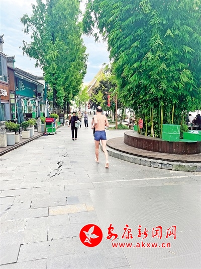 9月30日,一位市民著泳裝跑過龍舟文化園,違反文明游泳相關(guān)規(guī)定,成為文明安康不和諧的音符。vLt安康新聞網(wǎng)