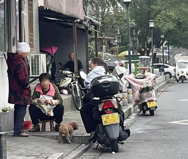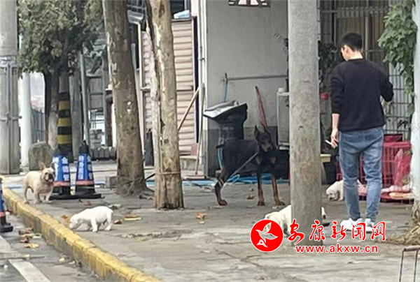 11月9日,在城區(qū)東內(nèi)環(huán)路住戶門前,有市民帶著狗未系繩和鄰居聊天,狗在門前隨意跑動(dòng)。(圖文/馬婷)CSu安康新聞網(wǎng)
