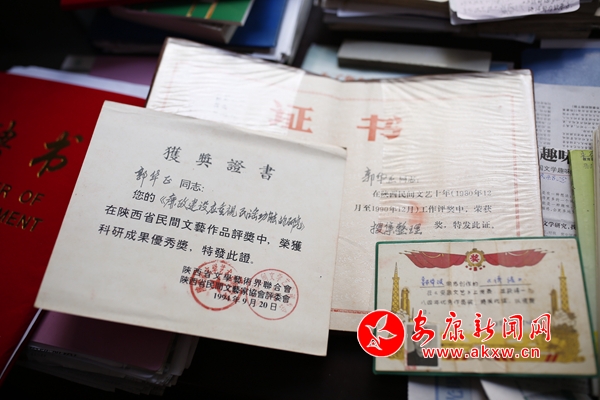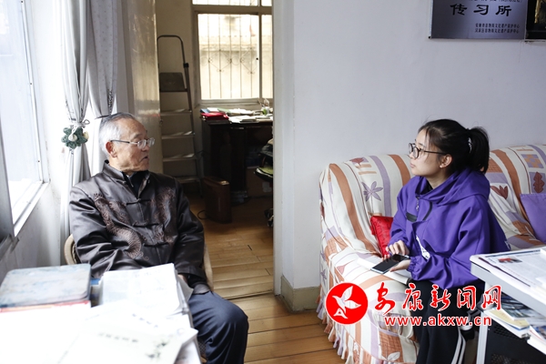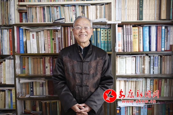 他的家在一樓,春日陽(yáng)光把屋里曬的暖暖,兩面墻的萬(wàn)卷藏書讓人一進(jìn)門就覺得徜徉于典籍的海洋。郭老緩緩坐在靠窗的凳子上,用一只手用力按住強(qiáng)烈抖動(dòng)的另一只手,娓娓道來(lái)。