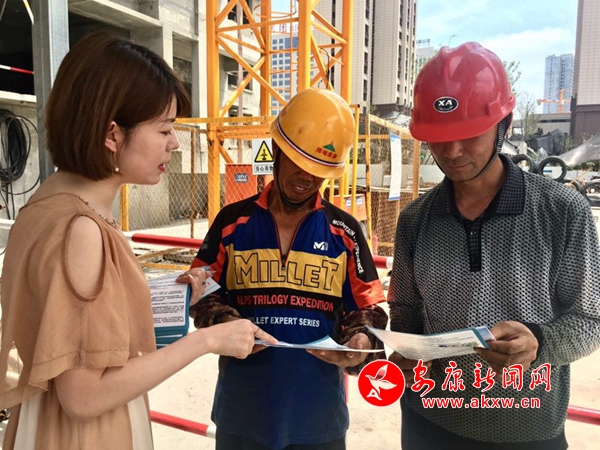 在高新區(qū)部分建筑工地,安康市和漢濱區(qū)人社部門通過擺放咨詢臺、放置展板、發(fā)放印制的宣傳資料、現(xiàn)場答疑等形式,對《社會保險法》《工傷保險條例》在維護(hù)職工權(quán)益方面的重要意義、工傷保險參保繳費(fèi)政策、工傷認(rèn)定申辦程序以及工傷保險待遇等方面進(jìn)行宣傳。