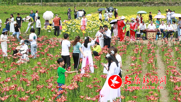 整場(chǎng)活動(dòng)包括了文藝演出、旗袍秀、花田書(shū)法、模特?cái)z影、太極表演、藝術(shù)插花、品嘗百合粥等內(nèi)容。游人穿梭于花海之中,擺出各種拍照造型,恨不得將整片花海都裝進(jìn)他們的鏡頭中。