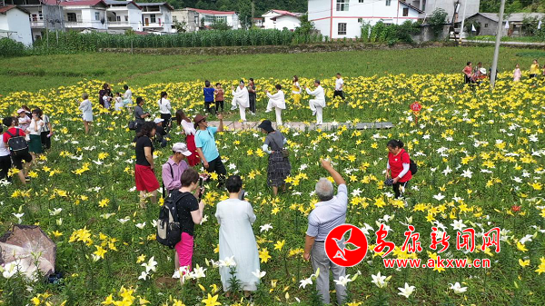 活動(dòng)當(dāng)天氣晴空萬(wàn)里,天空中飄著朵朵白云,將滿(mǎn)園的百合花映襯得格外嬌艷。十里八村的鄉(xiāng)親們還有遠(yuǎn)道而來(lái)的客人齊聚湘坪村,共赴這場(chǎng)百合花的盛宴。