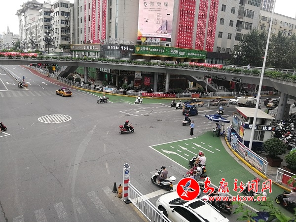 8月2日,記者在中心城區(qū)馬坎十字發(fā)現(xiàn)了道路新增綠色引導區(qū)域,記者從漢濱交警大隊了解到,目前城區(qū)除了馬坎十字之外,中心廣場十字、一橋橋南十字,東堤十字的三車等待區(qū)也在同步施劃中,警示車輛各行其道。